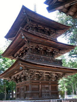 ▲江戸時代に再建された信州で最も重厚な三重塔