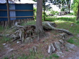 境内のあちこちに樹齢300年は超えたであろうような大木の切り株跡が残されています。1000年以上にわたって人びとが境内の樹木を大切に守り育ててきたのです。