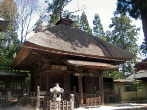 『若一王子神社御本尊創建四五〇年記念事業 長野県宝 観音堂・三重塔修理工事報告書』(平成23年刊)によると、観音堂は方3間、寄棟造り、茅葺き、妻入りで、お堂の正面に1間の杮葺き向拝が付設されているということです。