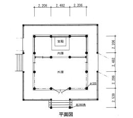 観音堂の構造の特徴としては、上の平面図が示すように、屋内の中央よりも奥まって内陣を設けて、そこに宮殿(独立の殿堂として須弥壇を結構)を置いている点です。
