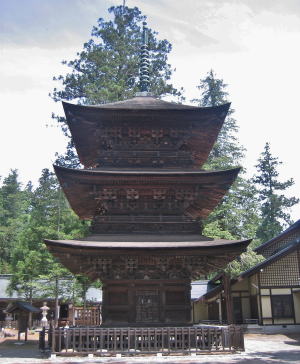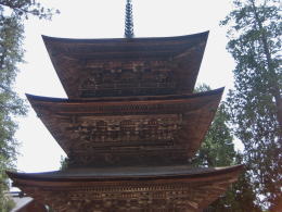 初重から上層に向かっての堂舎と屋根の逓減率はきわめて小さく、その分どっしりした印象です。離れて見ると「ずんどう」に感じるかもしれませんが、下から見上げたときにその大きさや高さを実感するようになっています。
