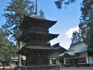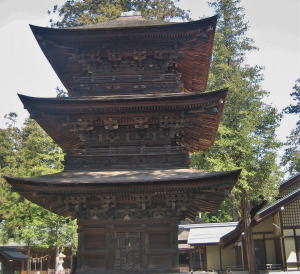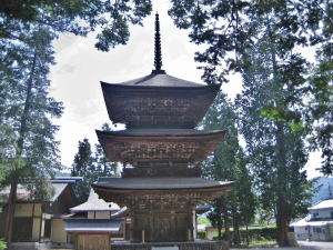 この三重塔の一番の特徴は、その圧倒的な大きさと重厚感、つまり高さと各重の堂舎と屋根の横幅の広さです。塔の高さは21.28メートルで、信州で最高を誇っています。
