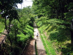 【写真上】二の丸橋の下には深い堀の跡がある。二の丸を囲む濠で、淀ヶ淵とつながっていたらしい。