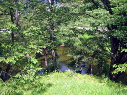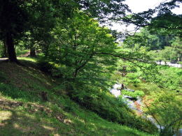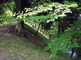 ▲本丸北側の土塁と堀▼