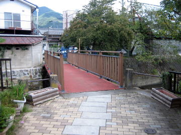 柳町通りを北に歩き続けると、東西に走る小路と交わる辻に出ます。そこが街並みの北端で、その先に橋が見えます。