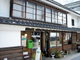 ▲菱屋の正面 武田菱の家門の染め抜き幕