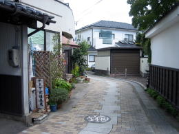柳町通りと交わる小路もなかなかに良い雰囲気の街筋です。この路は茶系の石畳で舗装されていて、落ち着いた趣を見せています。ここにも街づくりの担い手となっている店舗・企業や団体があります。