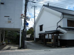 この小路に沿って東に向かうと、古い城下町に似つかわしい武具店があります。さらに小路を進むと、矢出沢川にかかる小さな橋があって、中花房橋という小粋な名前です。