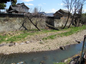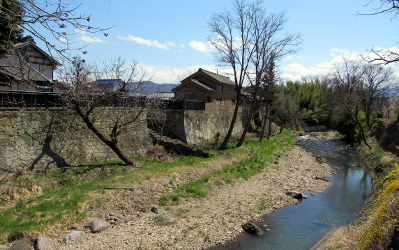 その辺りには石垣の護岸が築かれていて、対岸から眺めるとまるで城の石垣のように見えます。なかなかに見栄えのする風景です。