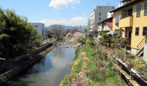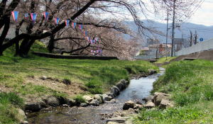 私が取材・撮影に訪れた4月半ば、おりしも梅や杏、桜が一斉に咲き始めていました。河畔は花見そぞろ歩きにも最適です。