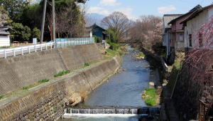 矢出沢川はその昔はかなりの暴れ川だったようです。柳町の神宮橋の辺りまでは、渓流の面影をとどめています。
