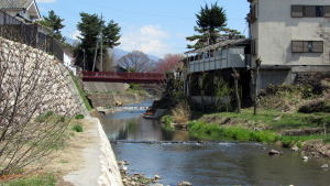 上田城の城下町を建設したさいに、真田家はこの辺りの川の流路や岸に手を加えて改造したと伝えられています。城の外堀として活用すると同時に、城下町の水害を避けるためだったと思われます。
