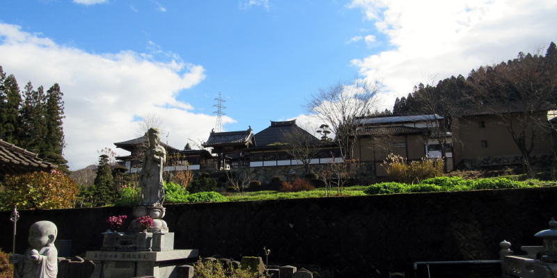 やがて徳川幕府の世になって、1683年(天和年間)に現在地――前林地籍――に寺院を移設したということです。ここは、古い寺院とも神社ともつかない廃墟ないし遺構があったところだとか。境内の本堂前には古い時代の堂宇・楼閣の柱の礎石が残っています。私の勝手な推測では、在地の神を祀る真言密教の修験道場の跡ではないかと見られます。