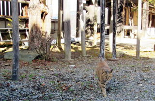 ▲主顔(あるじがお)をした猫が出迎えてくれた