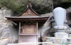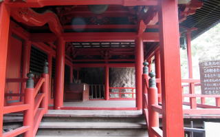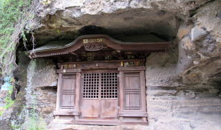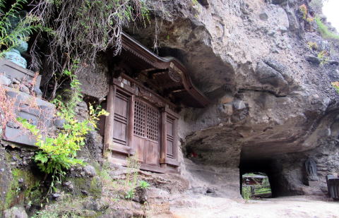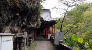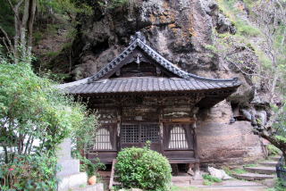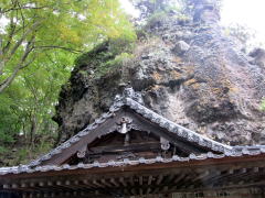 石垣で支えられた壇上の本堂は、屋根がもともと板葺でしたが、今は銅板葺となっています。とはいえ、板葺づくりの頃の端正な美しさは今でも保たれています。そこから崖の縁を北東に回り込む参道で、護摩堂、白山社、太子堂、愛染明王堂、そして端末の観音堂までたどることができます。